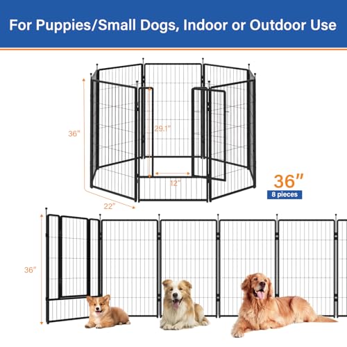 Dog Playpen 36 inch 8 Panels for Indoor & Outdoor Use – Heavy-Duty Metal Pet Fence with Ground Stakes