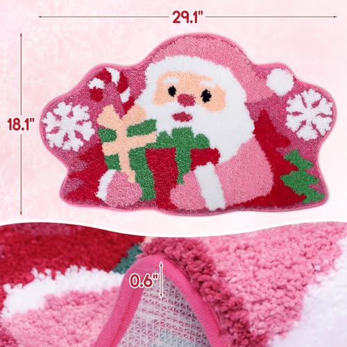 Percozzi Pink Christmas Santa Bath Mat Santa Bathroom Rug Non-Slip Floor Mat for Bathroom Kitchen Soft Absorbent Pink Christmas Decor Santaclaus Cute Bath Mat Xmas Gift 29.1"x 18.1"