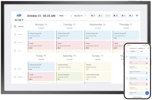 LOOFII 10.1" Smart Digital Calendar – HD Touchscreen Family Planner & Calendar with Chore Chart & Meal Planner (Black White)